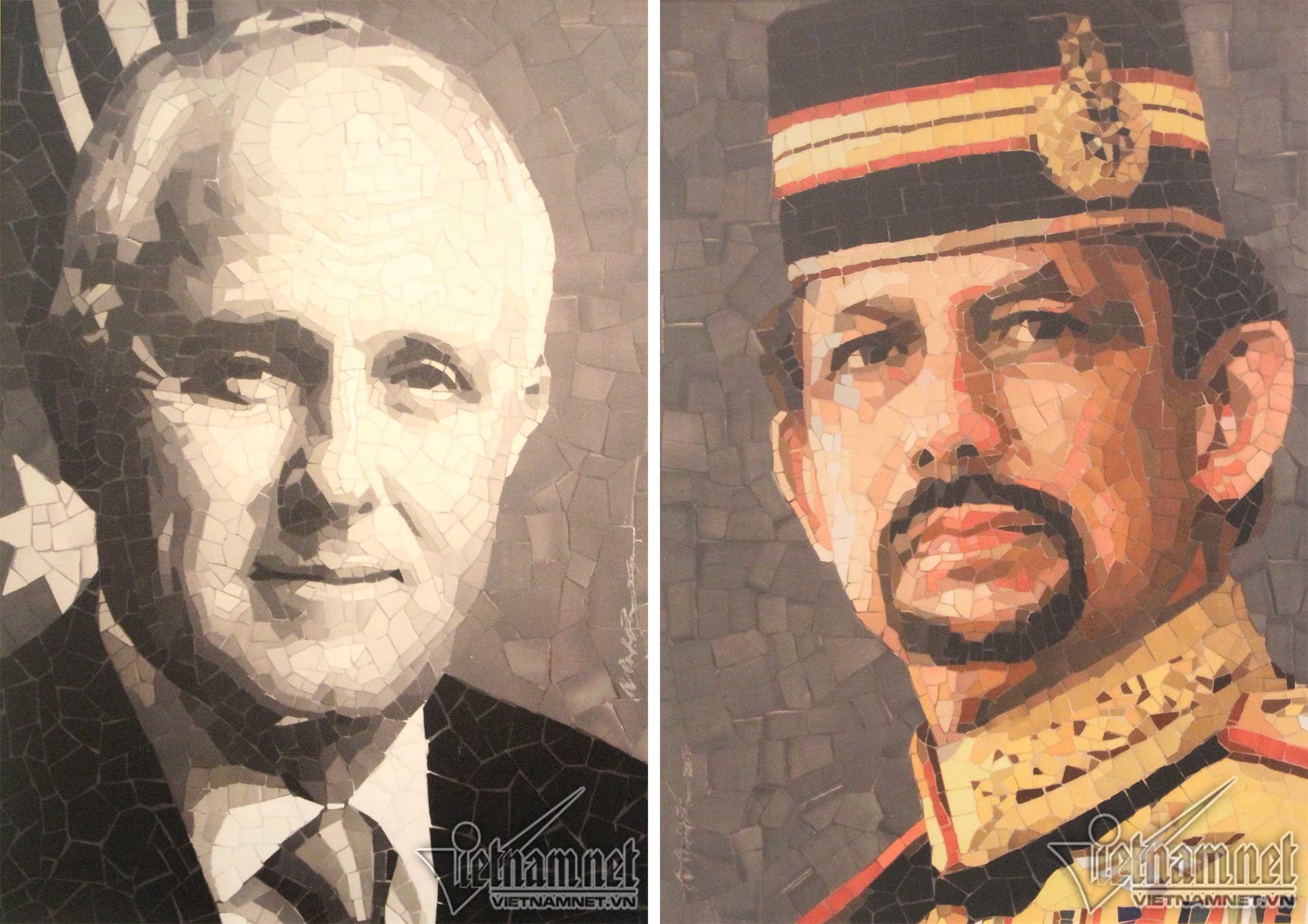“Các công đoạn để cho ra đời một bức tranh ghép gốm rất công phu. Ban đầu là lựa chọn những tấm ảnh chân dung của nhân vật; chọn một tấm chuẩn và dùng rất nhiều tấm khác tham khảo, rồi thể hiện trên tranh sơn dầu. Tiếp đến là nung gốm cho ra màu cần thiết. Nếu như họa sĩ dùng cọ để vẽ thì chúng tôi dùng kìm bẻ từng mảnh gốm nhỏ để ghép. Có khi chỉ một nụ cười mà ghép rất nhiều mảnh gốm nhỏ để có được các gam màu chuẩn”- họa sĩ Nhơn trải lòng.